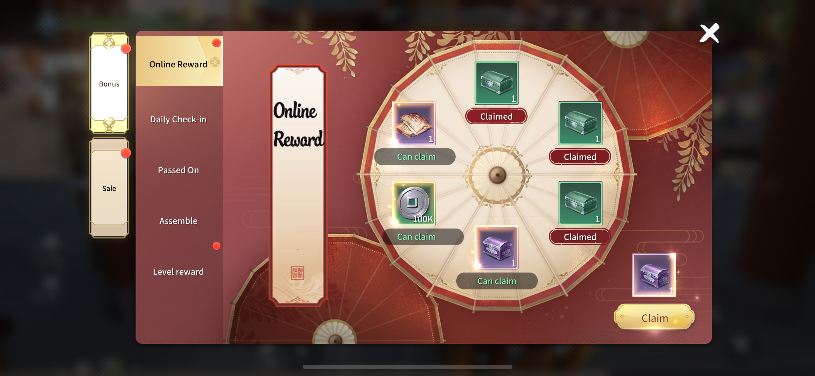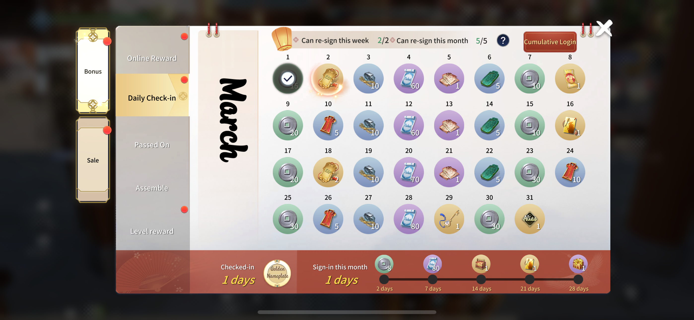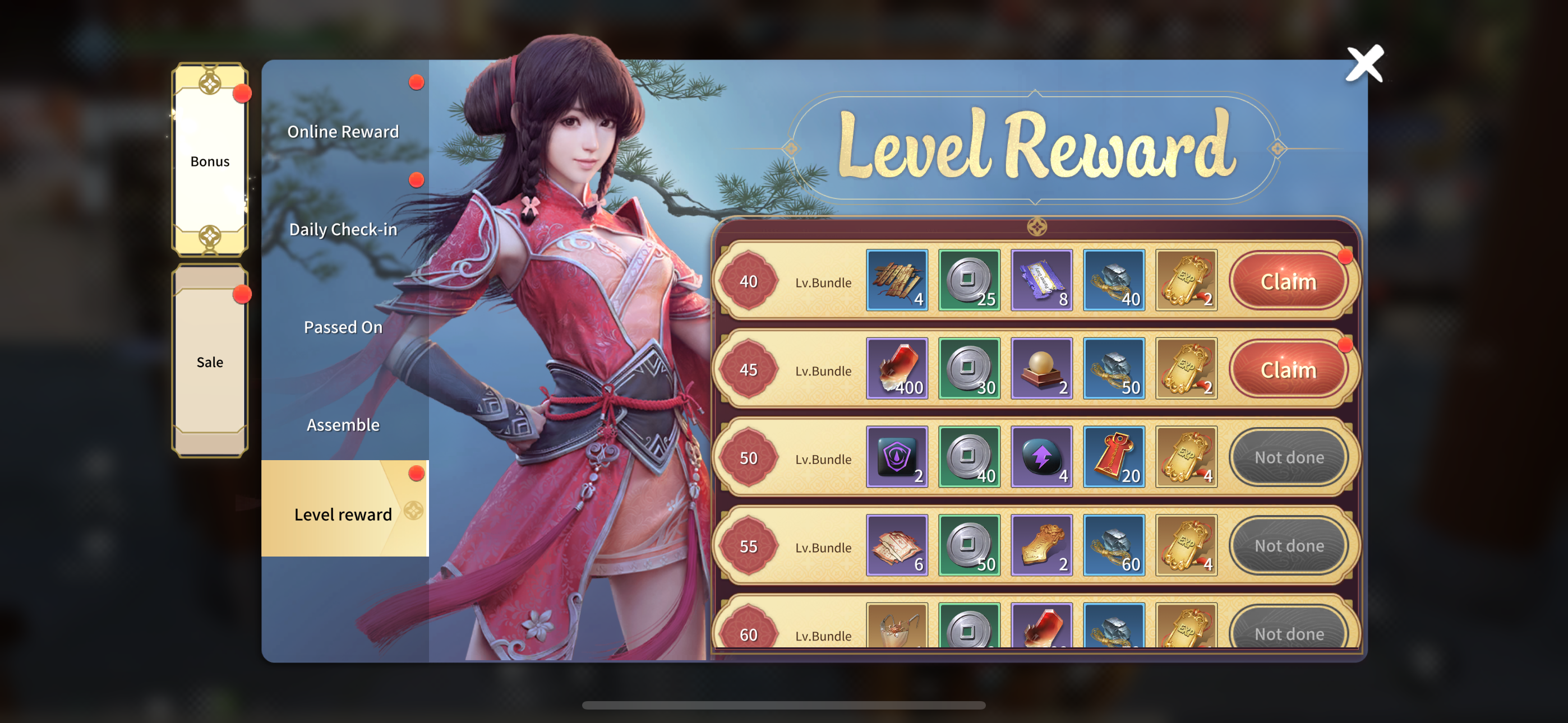 Be online for at least 60 minutes each day to claim rewards at six different stages. Whether you're actively exploring the Jianghu or idling, there are gifts waiting for you every day!