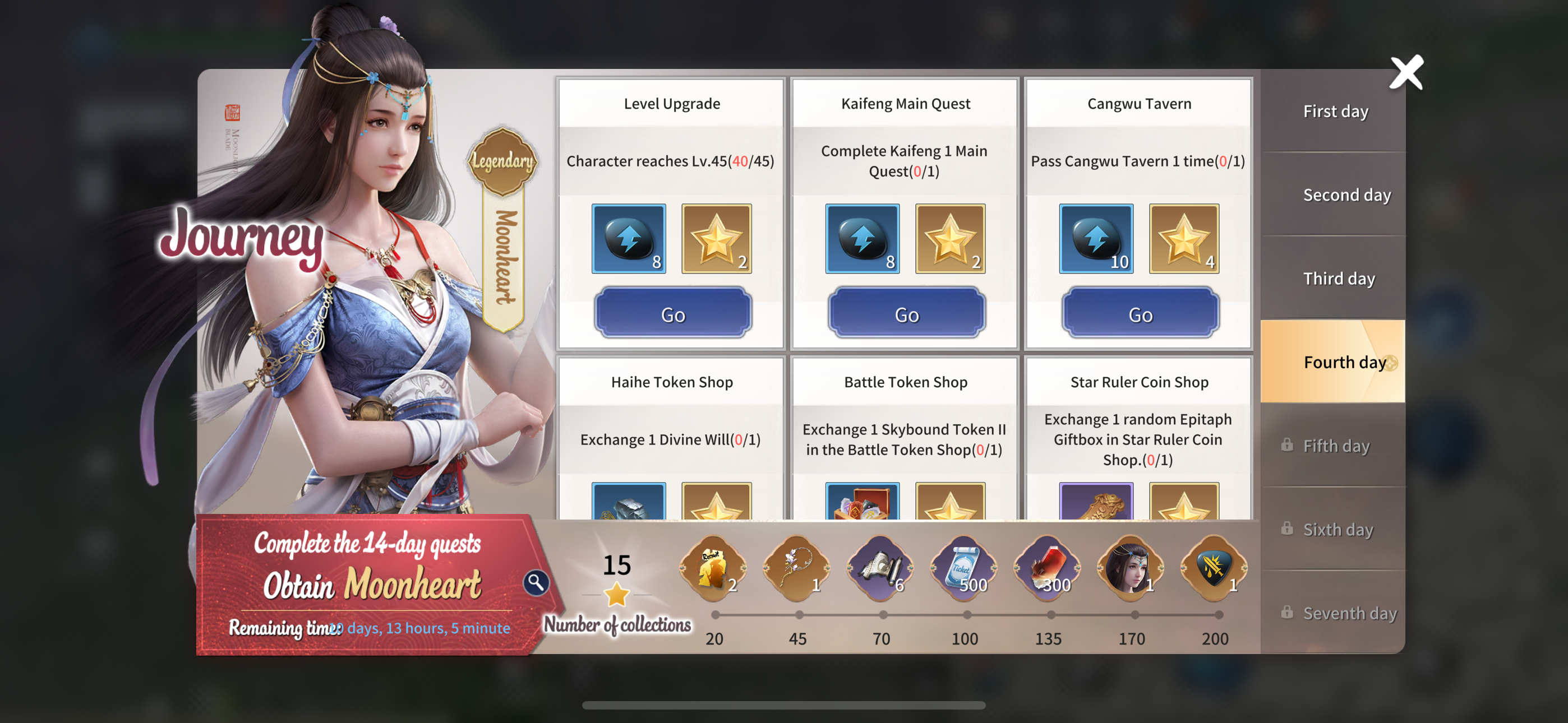 Complete designated tasks during the event to receive abundant growth rewards and The Road to the Jianghu stars. Collect a specified number of Journey - Stars to activate exclusive rare gifts: the waist accessory " Endless dream", the golden partner "Moonheart", the golden whetstone "Triforce Gravel" , and more.