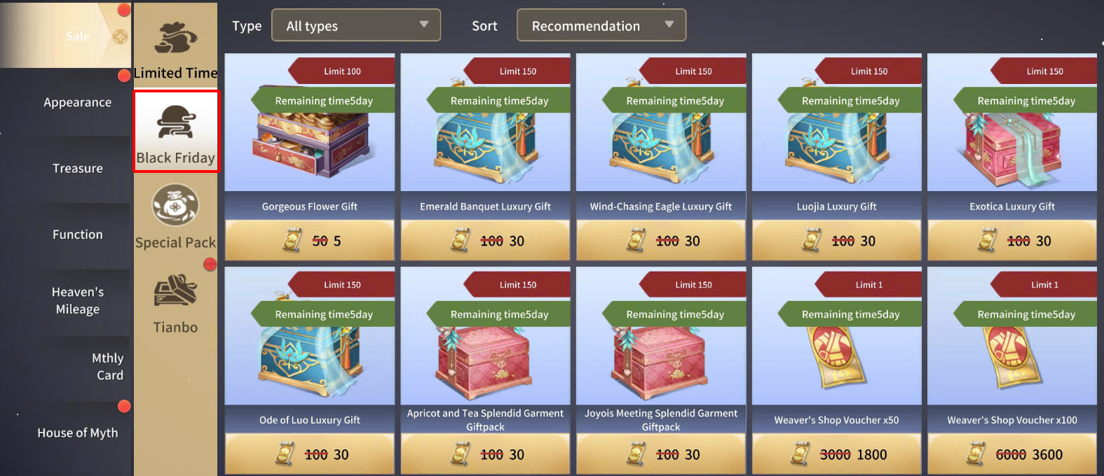 ✨ Event Details: Click on the "Black Friday" section in the store to enjoy discounts on exclusive bundle packs, Weaver’s Shop Voucher, and exquisite Gorgeous Flower Gift voting support items.