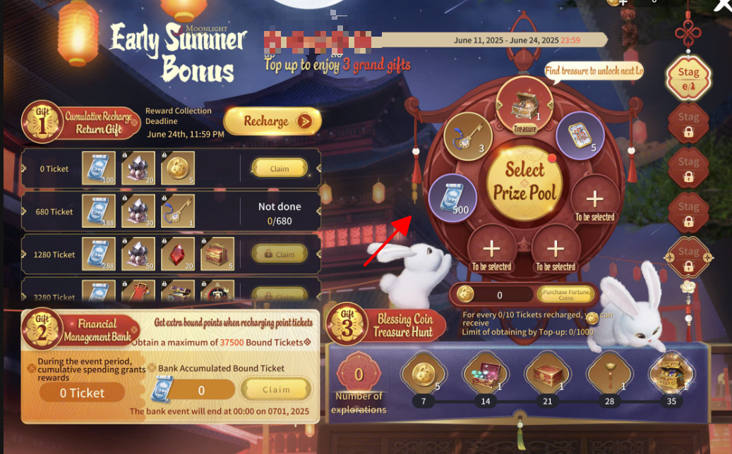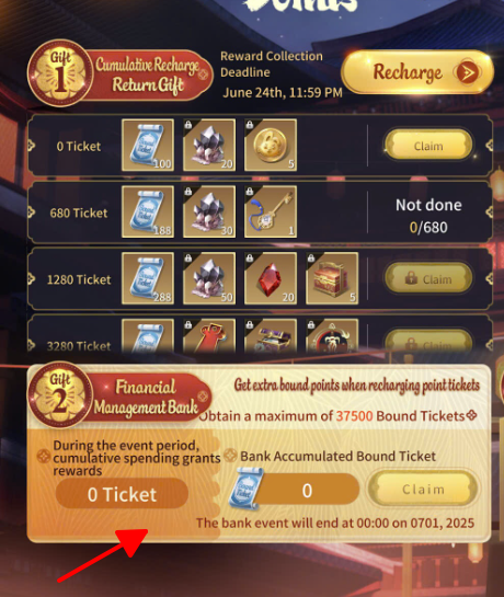 - After June 24, 23:59 (GMT+7), any further recharges will no longer count toward cumulative rewards and will not trigger any rebate bound ticket returns. However, any rebate eligibility and accumulated amount achieved before this cutoff will remain valid and can be claimed during the rebate period until the event interface closes on June 30, 23:59 (GMT+7).