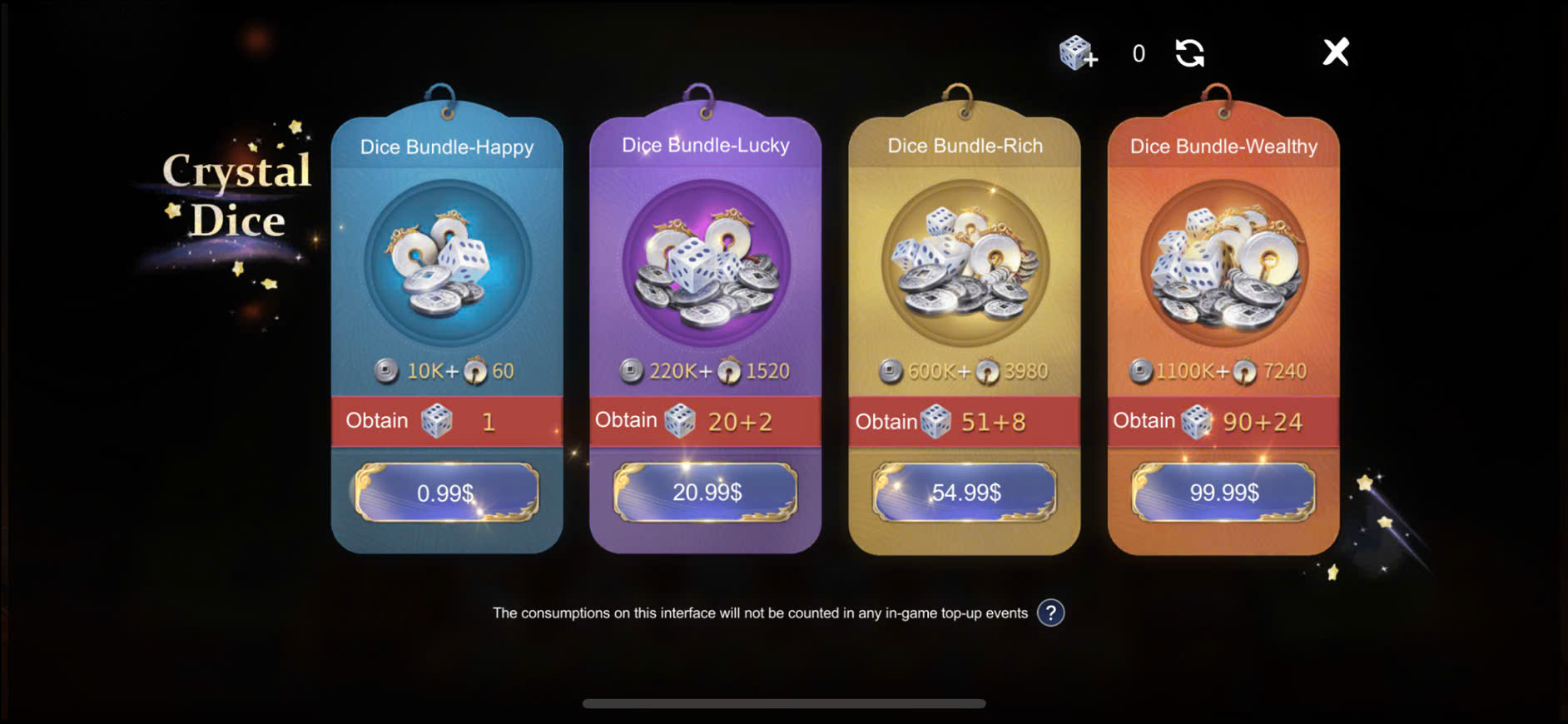 6. If there are any remaining crystal dice at the end of the event, they will be converted at a rate of 70 bound tickets per dice.