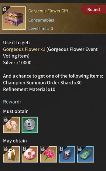 - Beli dan buka "Hadiah Bunga Elegan" di dalam game untuk menerima 1 Bunga Elegan (Item Voting Event)