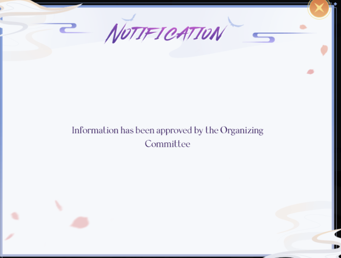 - Selama event berlangsung, silakan mendaftar di website resmi event,unggah 4 foto, dan isi informasi Guild beserta profil partisipasi. Setidaknya, salah satu foto yang diunggah harus berupa potret berwarna setengah badan atau satu badan yang diambil dalam 3 bulan terakhir. Foto tidak boleh diedit atau dimodifikasi dan harus menampilkan wajah peserta dengan jelas. Foto sintetis atau foto mirrored tidak diperbolehkan. Resolusi foto yang direkomendasikan adalah 1290x1080 untuk memastikan foto terlihat dengan jelas.
